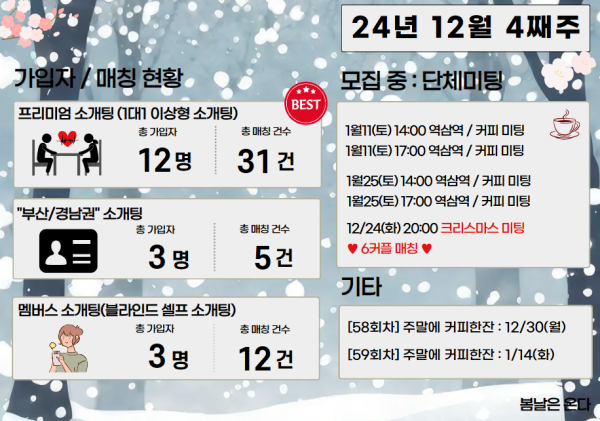 [12월4째주] 가입자 및 매칭 현황