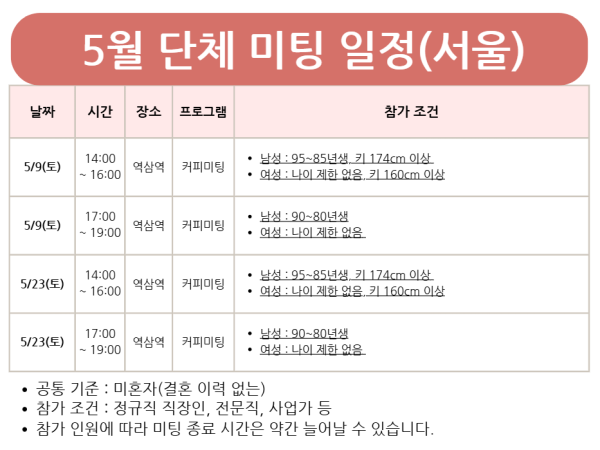 5월 단체 커피 미팅(로테이션 소개팅) : 서울 강남