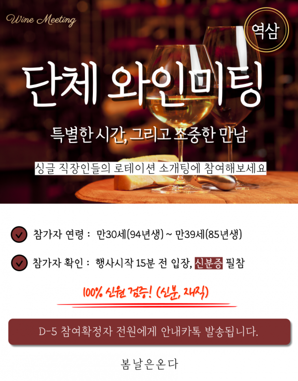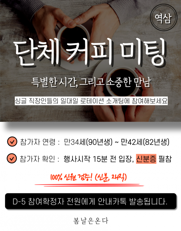 2030 싱글 직장인 로테이션 소개팅 커피미팅 & 와인미팅