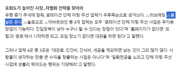 이번에 2024년 4월 로테이션 단체미팅 전문업체로 봄날은온다가 한경에서 기사로 언론보도 되었습니다.