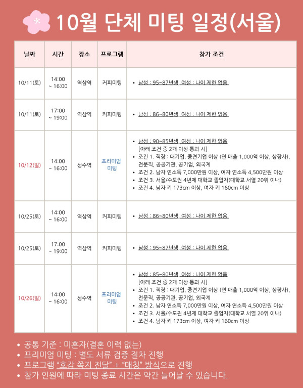 [10월] 단체 커피 미팅 (로테이션 소개팅) : 서울, 부산
