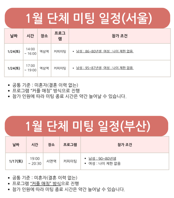 [1월] 단체 커피 미팅 (로테이션 소개팅) : 서울, 부산