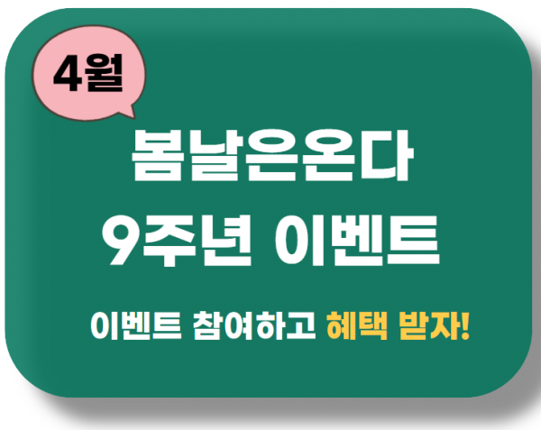 [9년차 기념 이벤트] 봄날은온다 4월 게시글 이벤트(20만원 쏩니다! 한번 달려가 볼까요!ㅎㅎ 안하면 손해)