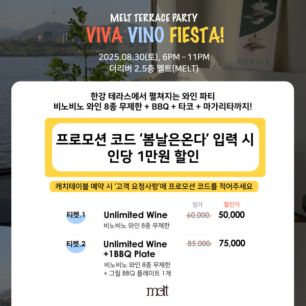 [홍보 제휴] 8월30일 한강 테라스에서 펼쳐지는 와인 파티 즐기실 분 (feat. 더리버, 멜트)